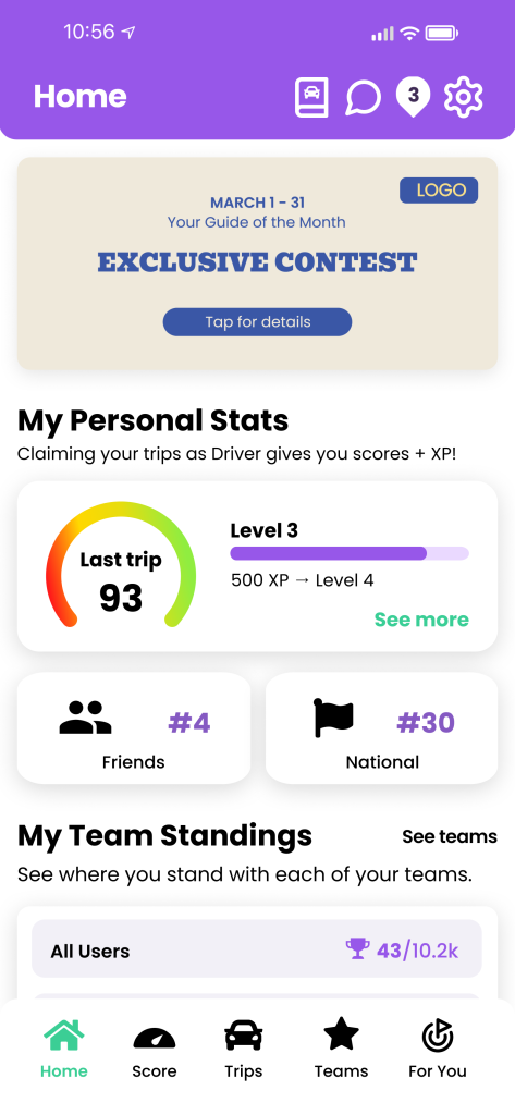 The Safe Roads Challenge app empowers young drivers by building confidence and offering tools beyond traditional driver education. With gamified features like competitions, rewards, driver scoring, and leaderboards, every trip becomes an opportunity to develop safer habits. In our app, we’ve identified high-traffic areas and converted them into Reward Zones, where drivers who pass safely can earn rewards, creating a win-win for both communities and drivers. That’s where you come in as a reward partner!