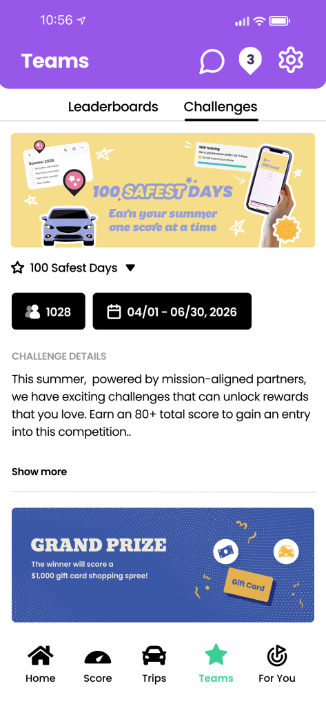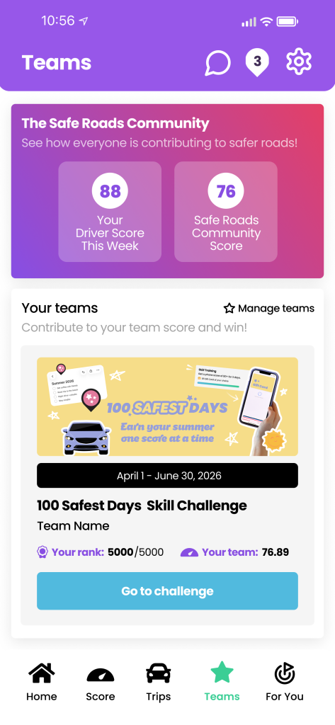 Empowering young drivers with skills and confidence through the Safe Roads Challenge—the safe driving app with fun and exciting rewards.
