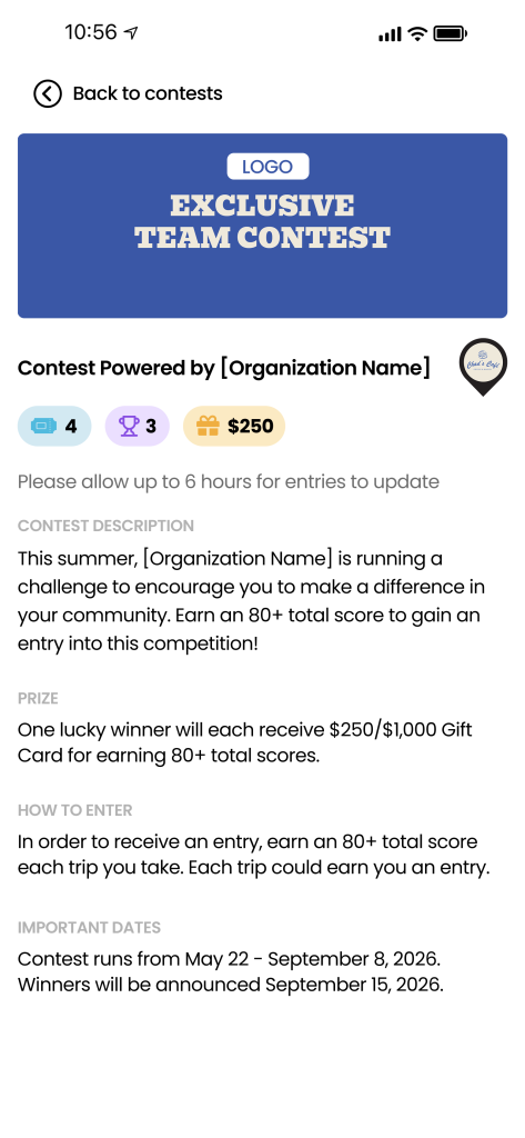 As a School Supporter, a digital pin will be placed in a school zone on the app’s Reward Zone Map featuring your logo. When drivers pass this location safely, they’ll activate an entry into our app’s monthly community skill contest.